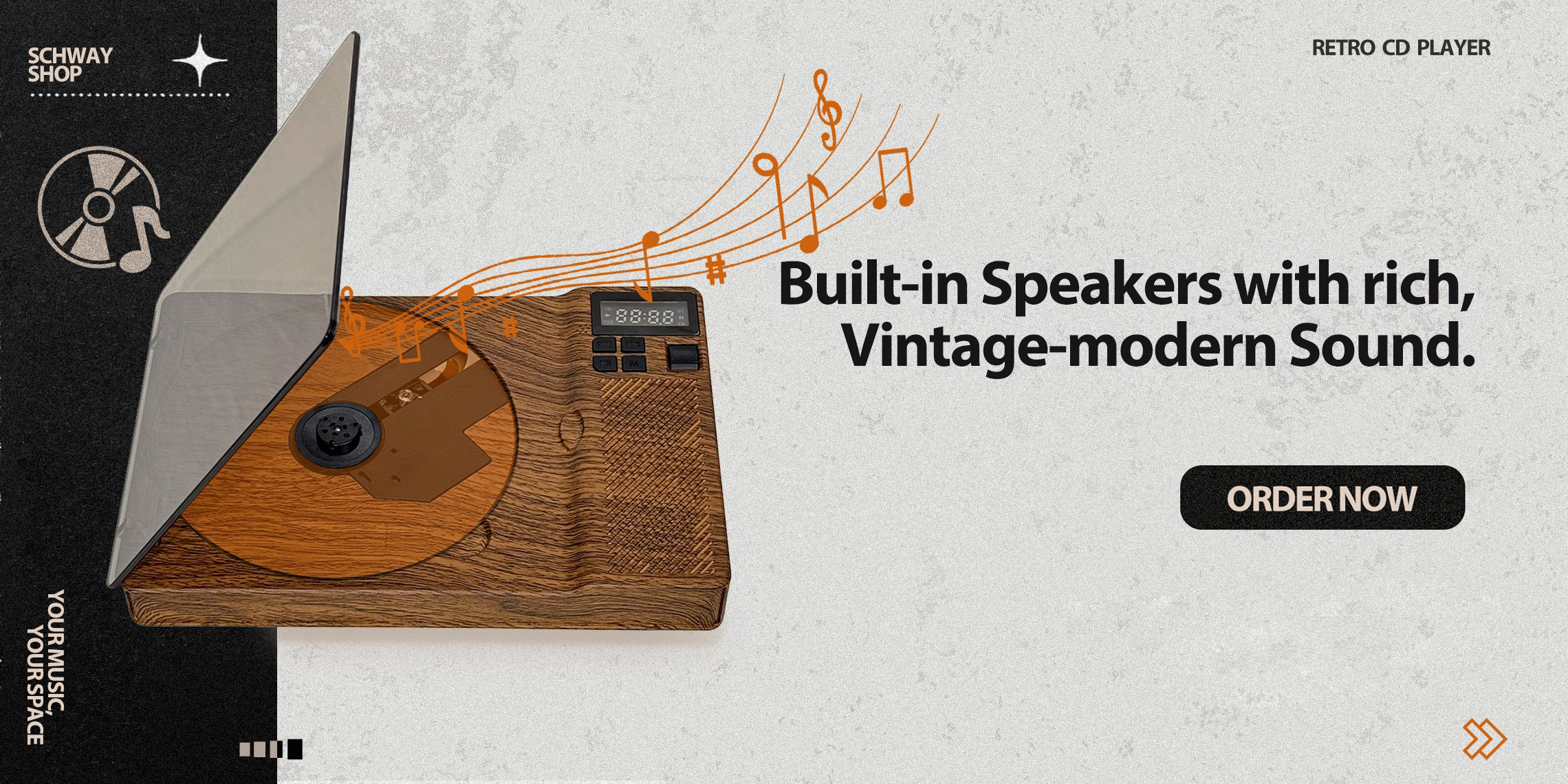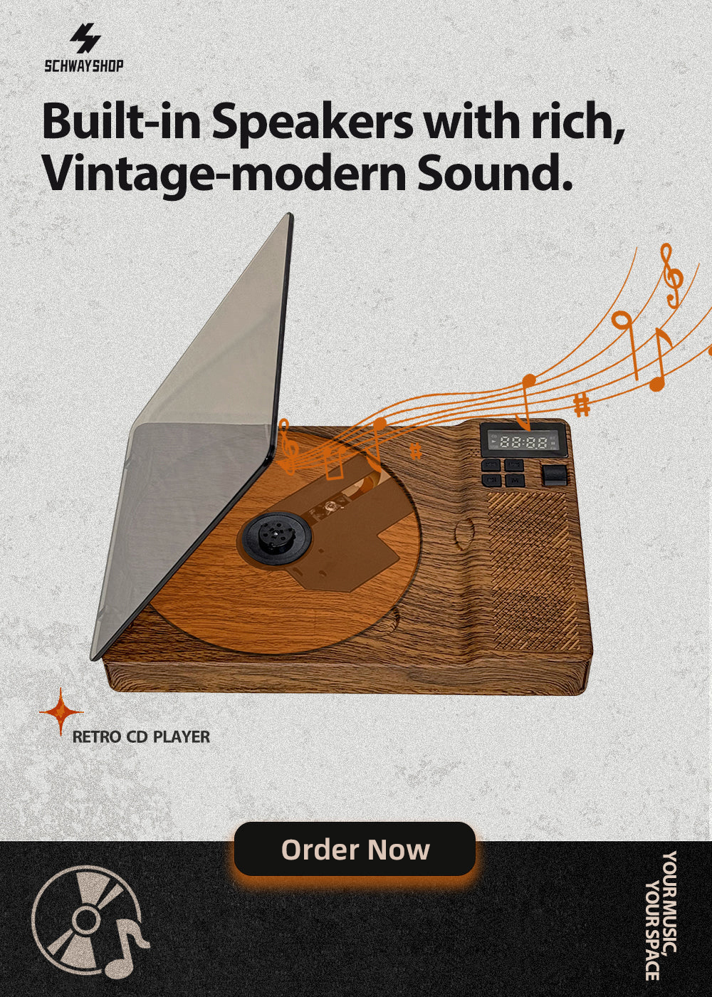 SchwayShop Retro Wood Grain CD Player with Built-in Speakers